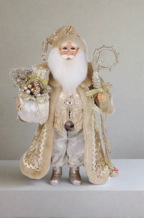 Our Lighted Touch of Gold Santa is great for any shelf, mantle, and countertop. The quality is unmatched with this decorative piece’s hand-painted face, inset eyes, unique fabric, and detailed accessories. With this design's elegant touch and beautifully lit tree, he's sure to add character and style to any home. Lights are battery operated. This piece takes 2- CR2032 button batteries.